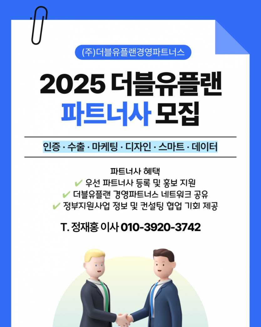 더블유플랜 경영파트너스는 풍부한 경험과 전문성을 바탕으로 기업의 성장을 함께 만들어갈 전문 협력 파트너사를 모집하고 있습니다.